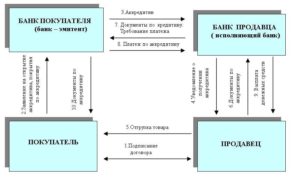 - покрытый. В этом случае средства для расчета по договору между покупателем и продавцом сразу направляются в банк продавца.