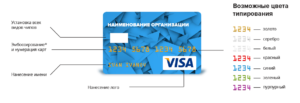 - Именная карта – используются печатные буквы для нанесения на пластиковую поверхность персональной информации о владельце и сроков действия платёжного инструмента.