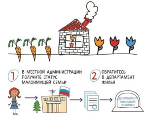 - получение бесплатного жилья на условиях социального найма для малоимущих семей, не имеющих собственной жилой площади или проживающих в стесненных условиях;