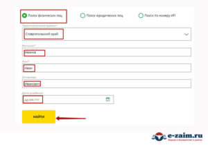 Сначала следует провести проверку суммы кредитной задолженности через портал ССП – введите ФИО и наименование территориального органа.
