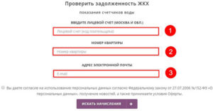 Поиск долгов требует указать период расчета, адрес квартиры или номер лицевого счета. Большинство сайтов предоставляют сведения только по номеру счета.