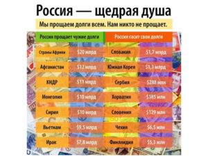 Надо признать, размеры списанных задолженностей составляют вполне приличные суммы. Тогда как собственный долг Россия не может выплатить до сих пор – он остается за страной еще со времен распада СССР.