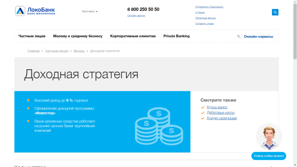 Официальный сайт Локо Банка – это основной источник ставок и других условий, упомянутых ниже. Итак, на официальном сайте предлагают четыре программы вкладов для физических лиц (таким же образом можно получить информацию о вкладах, например на сайте банка Таврический или Бинбанка).