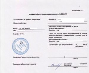 (: “Справка сведения об отсутствии наличии задолженности”)