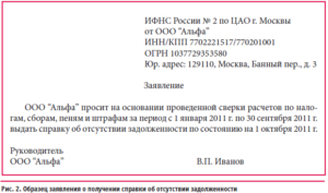 Как написать заявление в налоговую об отсутствии задолженности по налогам